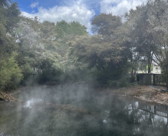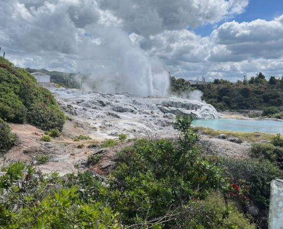 Visit Rotorua, a geothermal area with geysers and hot mud pools. You can start your day by walking through Hamurana Springs Nature Reserve to see redwood trees and blue pools in the springs. Then head to Kuirau Park right in the town to see hot pools and a designated area where you can soak your feet. After I highly recommend taking a tour of Whakarewarewaa Maori village, to learn about their culture and how they live with the geothermal activity. It was fascinating, affordable, and you’ll get to see the Pohutu Geyser spout periodically. Seriously, it was one of the coolest tours I have ever done.